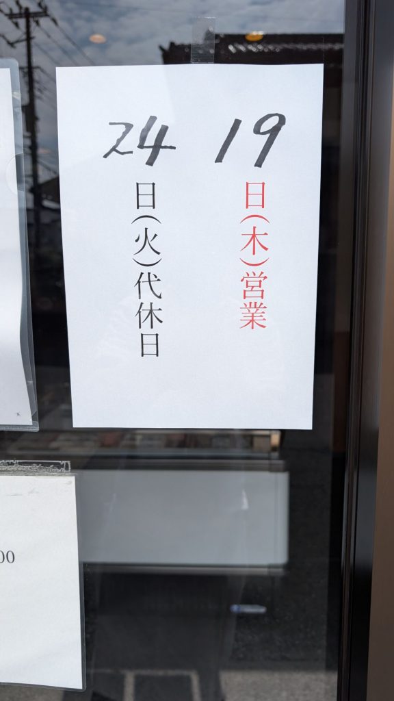 岡安製麺所直売所、お食事処めんこや岡安は3/24(火)代休日となりますので宜しくお願い致します。